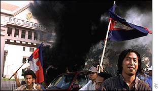 驻柬使馆建筑遭焚烧 泰国总理警告要派军队前往 (2003-01-29 22:42:39)