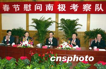 上午九时,卫星电话将中国南极长城站、中山站、“雪龙”船与北京联系在一起。在听取考察队领队魏文良、长城站站长魏明、中山站站长汤妙昌、“雪龙”船船长袁绍宏的汇报后,温家宝发表了热情洋溢的讲话。