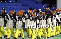 第五届亚洲冬季运动会二月一日在日本青森开幕。图为中国澳门代表团进入开幕式会场。作者:陶光雄