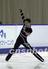 第五届亚冬会花样滑冰二月三日决出男子单人滑金牌,中国选手李成江不敌东道主日本选手,获得银牌。图为李成江在比赛中。作者:陶光雄