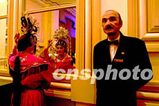 在美国芝加哥华人华侨春节联欢会上,扮演杨贵妃的演员上场前整妆,与希尔顿酒店的洋服务生在羊年相遇,形成有趣的三“羊”相会。作者:王瑶