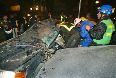 爆炸炸毁了这座10层建筑的前门脸,瓦砾碎片洒满了首都主要街道7号大街。消防人员在事发后赶到现场,努力从建筑中救出被困的幸存者。