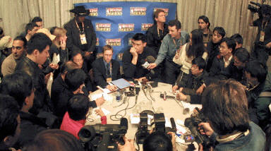 2月7日,NBA全明星赛在亚特兰大举行记者招待会。休斯顿火箭队中锋姚明在记者会上回答来自全世界各国媒体记者的提问。2003年NBA全明星比赛,将于2月9日在美国乔治亚州亚特兰大市的菲利普斯球场举行。