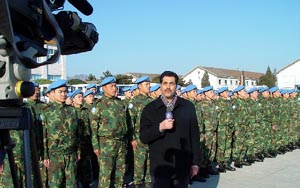 戴大校还回答了记者的提问。记者还参观了工兵连此次所携带的工程装备器材,并现场采访了部分参加维和任务的官兵。