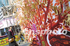 情人节将至,一棵挂满心语心愿的“许愿树”亮相上海街头,祝福天下有情人相爱到永远。作者:汤彦俊
