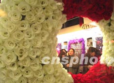 二月十三日,北京东方新天地的一家自制首饰店于情人节期间推出情侣饰品,一名女士正在试戴自制的耳环。作者:廖文静