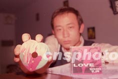 二月十三日夜,北京一名大学生正在酒吧里展示自己精心制作的情人节特别礼物--爱意光碟,碟中装载着自己和心上人的照片、动画、视频等内容。如今中国的年轻人不再满足于情人节送玫瑰、巧克力的传统方式。作者:俞丽伟