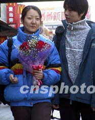 北京姑娘在“情人节”当天得到男友一束鲜花。这一天,在西单商业街,这种场面比比皆是。作者:邹宪
