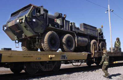 第101空降师副师长辛克莱说,满载该师装备的货轮于15日从杰克逊维尔港起锚,踏上长达三周的航程。船上飞机库面积相当于三个足球场,有三层楼高。一名参与协调装载工作的军官称,这次运输装备行动的规模相当于把一座小城搬到地球另一边。这两艘货轮由海军拥有,但是由私营公司操纵。据报道,美军海运司令部控制着120艘平民操纵的货船,以便在战时迅速将军队装备运到战区。