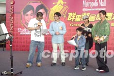 小朋友上台献唱「风筝与风」阿Sa轻拍他的头以示鼓励。