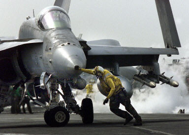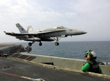 F/A-18“超级黄蜂”(SuperHornet)舰载多用途超音速战斗机,由美国麦克唐纳·道格拉斯公司制造,1995年首次飞机,装备于“林肯”(USS Abraham Lincoln)号核动力航空母舰。