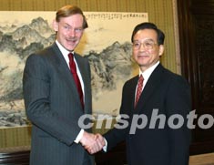 国务院副总理温家宝,十七日在北京会见美国贸易代表佐利克。作者:满会乔