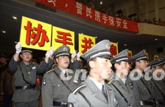 北京西城警方二月十八日举行“两会”保卫誓师大会,来自公安、武警、工商、城管、保安等相关部门的两千余人参加了大会。作者:任海霞