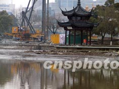 杭州西湖湖底隧道工程动工以来,西湖湖面以平均每天三十厘米的速度下降,截至十八日下午,西湖已基本见底。据悉,这是西湖近百年来第二次见底,第一次见底是一九五五年底至一九五六年初,由大旱造成。作者:张茵