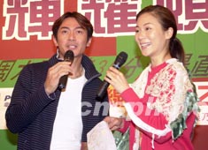 电视剧“九五至尊”两位男女主角江华、张可颐2月18日在香港出席“加港星辉耀颐康”筹款晚会记者会,江华、张可颐当晚将合演黄梅调游龙戏凤,为筹得更多善款倾力演出。筹款晚会将于本月二十二日晚举行。中新社传真 邓庆乐 摄