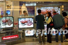 近来,全球品牌等离子电视机正以迅猛的速度进军香港市场,这种“先入为主”的格局,或许正是等离子电视机走进香港百姓家庭的前奏。图为香港一电器店展示各款价格不菲的等离子电视机。中新社传真 潘索菲 摄