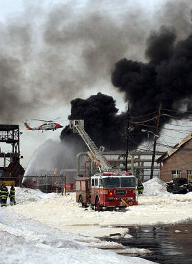 图文详讯:美国纽约州一家炼油厂因爆炸引发大火 (2003-02-22 00:30:40)