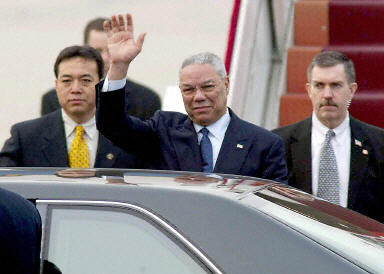 另据报道,鲍威尔于22日下午搭乘专机飞抵东京揭开日本、中国和韩国三国的访问行程。他于当天晚上在外务省饭仓公馆先和小泉日相进行约四十五分钟的会谈,随后接着和川口外相会谈。