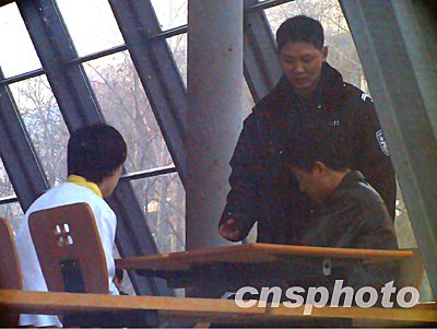 北京大学农园餐厅二月二十五日发生自制黑火药爆炸事故。图为警察在餐厅前执勤。作者:武仲林
