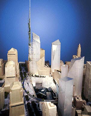 美国建筑师丹尼尔·利贝金斯德准备在纽约世贸中心废墟上,兴建532.8米的世界最高尖塔大楼的构想,26日获得评选人员的青睐。