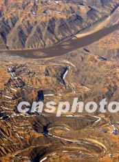 据中国黄河水利委员会的信息,黄河今年出现五十年来罕见的枯水期,预计仅从今年元月至大汛七月上旬,黄河来水仅仅为81亿立方米,比往年少50%左右。图为二月鸟瞰陕北黄土高原上的黄河和支流。作者:贾国荣