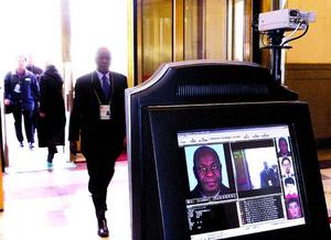 昨天下午,全国政协十届一次会议在人民大会堂举行第一次新闻发布会。在进门处摆放的一台屏幕引起了记者们的注意,因为每位记者进门时,都可从屏幕上看到自己的照片、单位等情况。据了解,这是一套非常先进的安检系统。