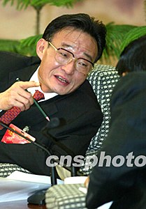 在安徽代表团,他认真听取了王金山省长及省经贸委主任杨振超、省劳动和社会保障厅厅长宣林、省财政厅厅长朱玉明,合肥市市长郭万清、安徽三联集团总裁金会庆、毫州市谯城区魏岗镇党委书记张培阳等代表的发言,还不时地插话提问。就代表提出的问题和建议要求,发表自己的看法。