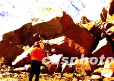 新疆地震后的314国道克州段,六日上午有一处山体滑坡,大批车辆受阻。作者:宋吉河