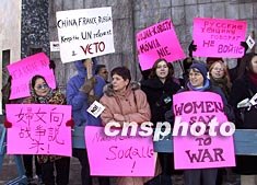 三月七日联合国两机构负责人第三次向安理会提交核查报告,同时英国在美国和西班牙的支持下提出给伊拉克解除武装最后期限的修正案。就在安理会成员激烈辩论的时候,包括华裔妇女在内的来自各国的妇女在联合国大楼外举行示威,反对对伊开战。作者:赵海