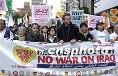 日本民间团体八日在东京市中心再次举行大规模的反战游行,反对美国准备对伊拉克发动战争。作者:陶光雄