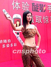 图:广州春季商战开始 模特儿造势展示手机