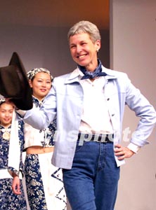 十二日,美、英、法等22国驻沪领事夫人们齐聚东华大学,参加主题为“女性之美,服装之魅”的文化交流活动。活动中领事夫人们还兴致勃勃的走上T台与东华大学的师生共展女性风采。图为领事夫人们在T台上表演。作者:汤彦俊