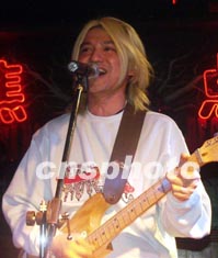 曾经风靡一时的香港Beyond乐队,15日晚首次在中国的西部兰州焦点俱乐部登台献艺。图为香港Beyond乐队的前成员叶世荣在舞台上激情高歌。作者:刘呈军