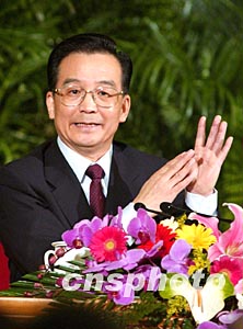 温家宝表示,我们有改革开放二十多年来奠定的雄厚物质技术基础,有安定团结的政治局面,只要坚持正确的路线和政策,我相信在以胡锦涛为总书记的党中央领导下,我们一定能够克服困难,实现全面建设小康的宏伟目标。