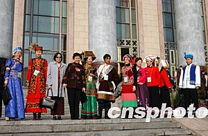 十届全国人大一次会议三月十八日闭幕,全国人大少数民族代表会前在人民大会堂前合影留念。作者:盛佳鹏