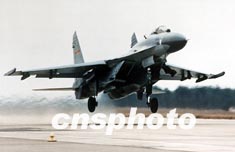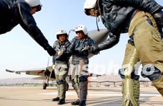 刚刚下过一场大雪的机场显得异常清冷。一架某型国产飞机挂上导弹,整装待发。