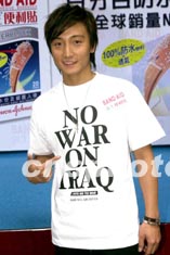 图:方力申身穿印有NO WAR ON IRAQ字样的T恤