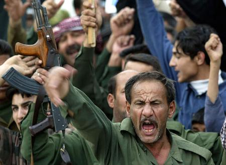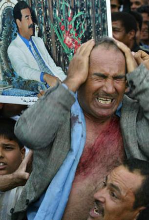 中新网3月19日电 当地时间3月18日,巴格达街头爆发了大规模的抗议美军入侵伊拉克的集会。由于萨达姆拒绝了美国的最后通牒,战争一触即发。(春风)