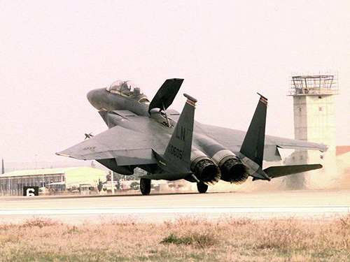 F—15是目前美国空军主力战斗机和最先进机种(未服役的F—22除外)。在“沙漠风暴”行动中,联合国部队共击落39架伊拉克飞机中的90%是F—15C完成的。