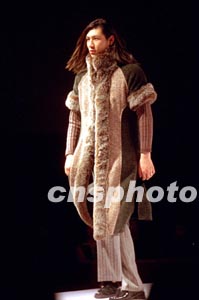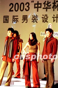 一名男模二十日晚在上海举行的“中华杯”国际男装设计决赛展示时尚男装,此届赛事为中国服装设计界唯一的国际性男装赛事。作者:刘殊瑾