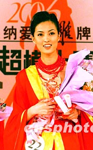 由广东电视台主办、中国概念九八模特经纪有限公司协办的“纳爱斯雕牌2003超级模特选拔赛”,三月二十二日晚在广州举行决赛。中新社传真 钱兴强 摄