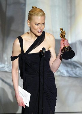 妮可基曼凭借在影片《时时刻刻》中的精彩表演夺得最佳女主角奖。