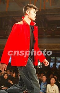 2003朱钦祺/诺帝卡秋季时装发布会二十四日在北京举行,展示了著名设计师朱钦祺的美国风情设计创意作品。作者:毛建军