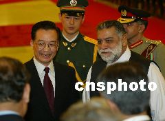 温家宝欢迎巴基斯坦总理贾迈利 作者:满会乔