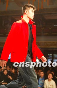2003朱钦祺/诺帝卡秋季时装发布会二十四日在北京举行,展示了著名设计师朱钦祺的美国风情设计创意作品。作者:毛建军