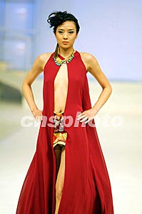 香港时装精选《今夜星光灿烂》二十四日晚在北京中国大饭店成功举行,张洁雯的女性服饰作品柔和古典与现代元素。毛建军 摄