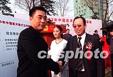 香港拼牌集团服饰公司二十五日在北京举行2003年中国散打王争霸赛冠名仪式,以进一步开发中国大陆服装市场。图为公司董事长柯夏鸣先生(左)与主办单位代表扬富年先生在签约仪式上。作者:武仲林