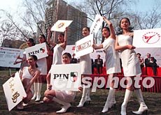 2003年中国散打王争霸赛开赛在即,主办方二十五日在北京推出美丽的散打王天使,为赛事造势。作者:武仲林