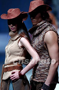 二十八日,“威鹏”2003/2004秋冬中国牛仔服装流行趋势发布会在北京举行,模特展示的服装充满了经典与现代的融合,令牛仔服装的面貌为之一新。作者:盛佳鹏