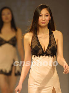 在北京举行的2003年中国国际服装服饰博览会上,欧洲经典内衣28日晚进行了展示。作者:赵振清